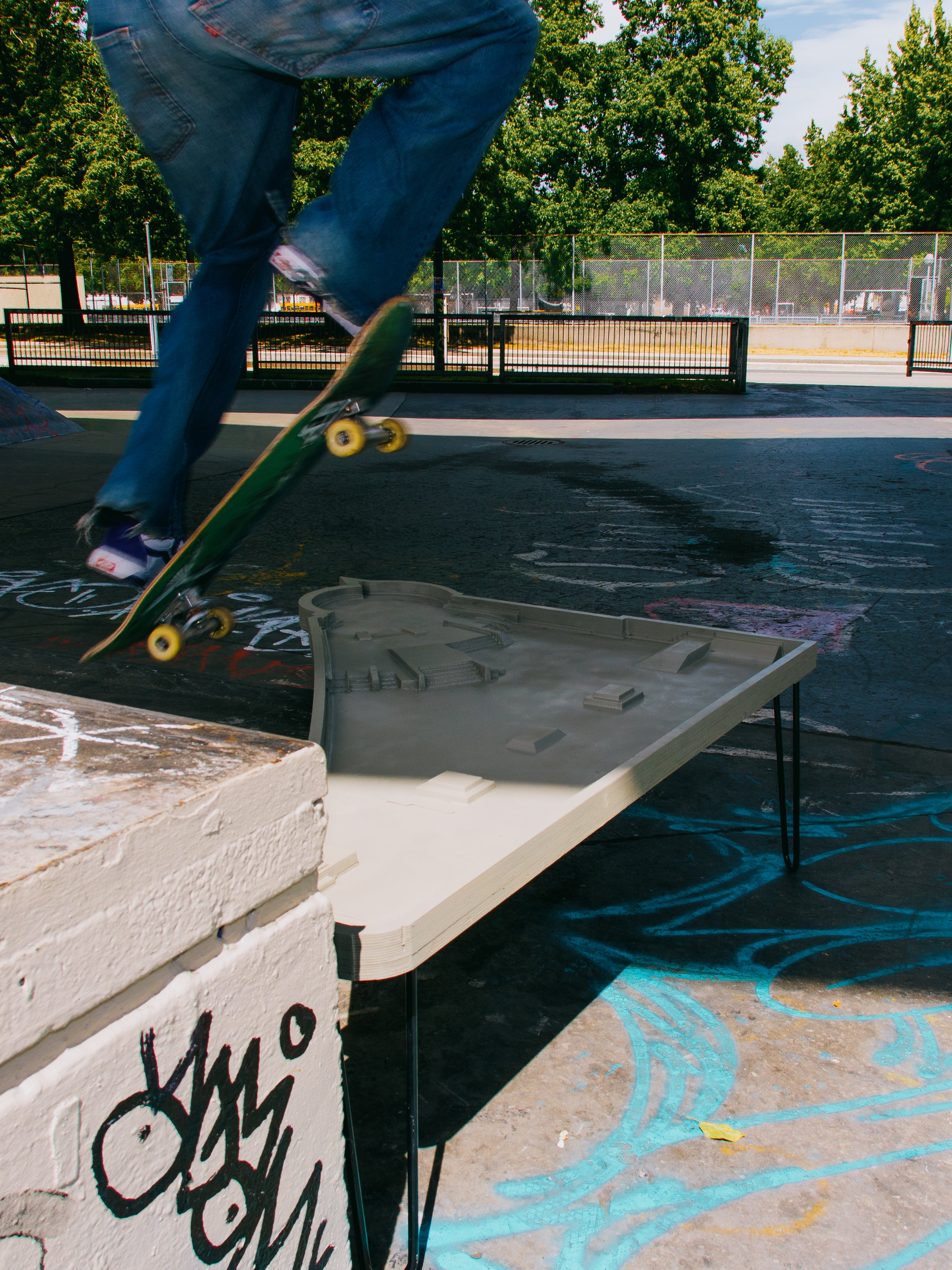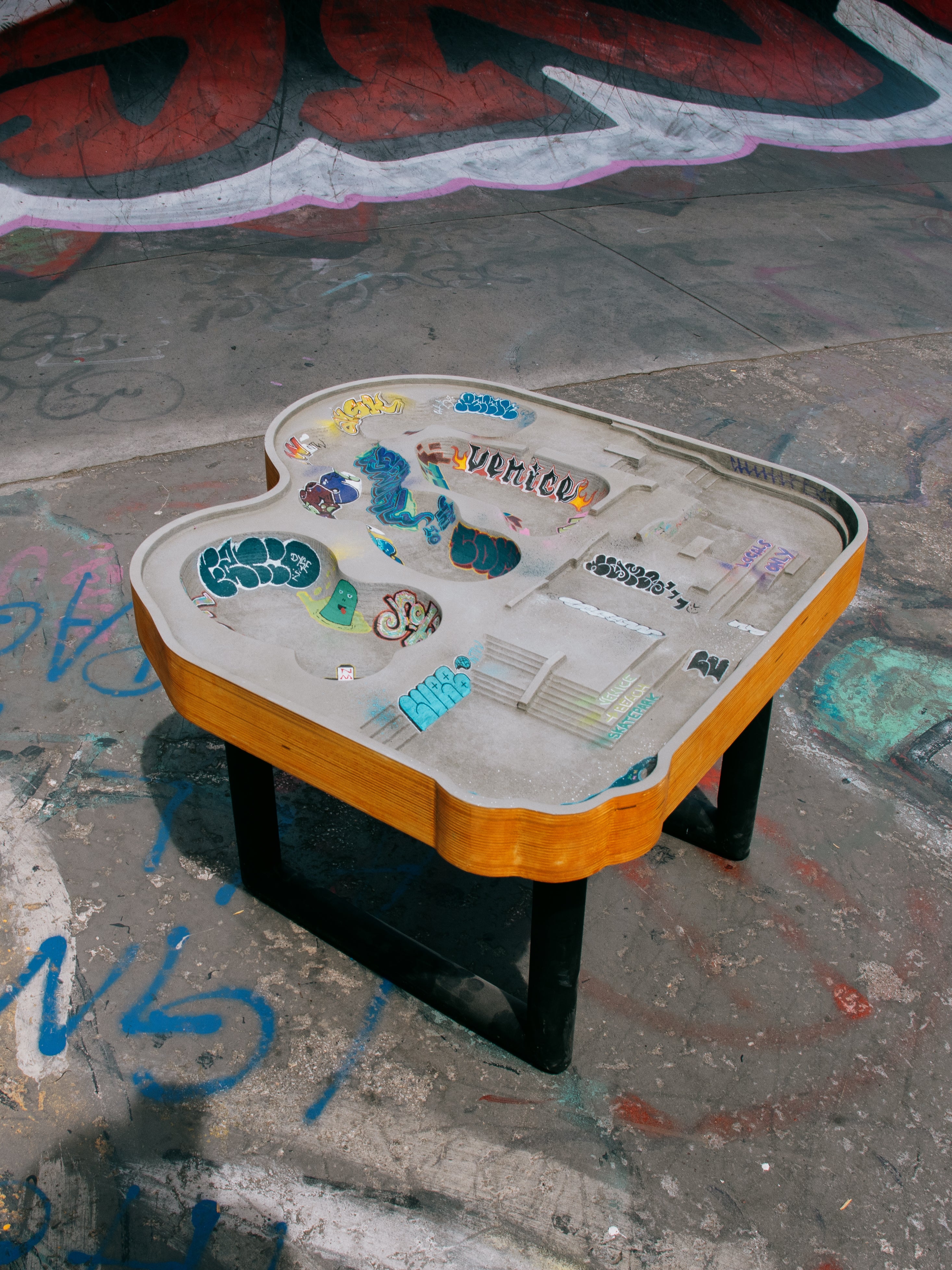 Kids' tables come blank, and we want them to add their custom art or stickers. The custom piece comes with graffiti of your selection or our resident artist Ethan can decide. The pro models come clean.