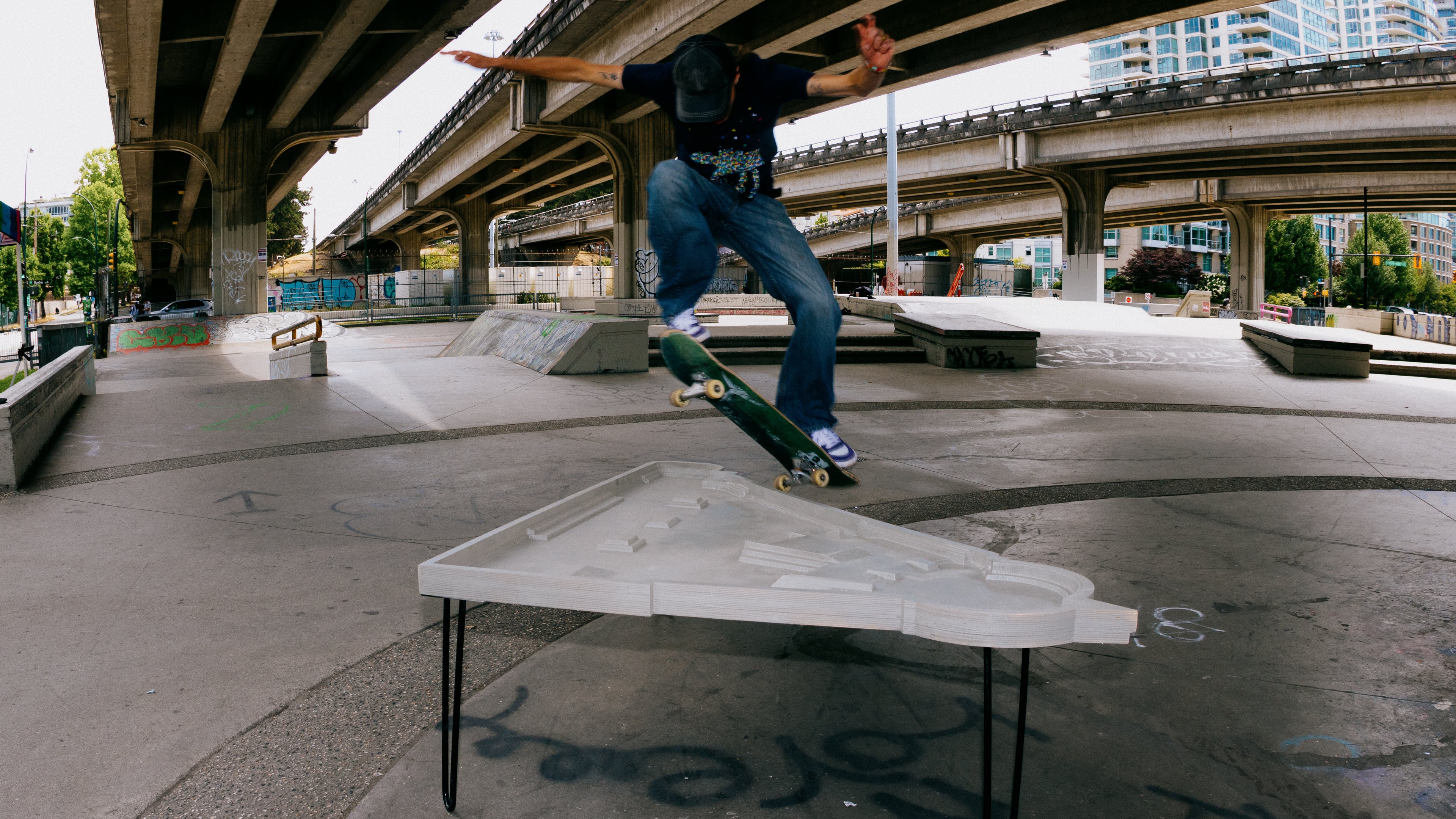 Kids' tables come blank, and we want them to add their custom art or stickers. The custom piece comes with graffiti of your selection or our resident artist Ethan can decide. The pro models come clean.